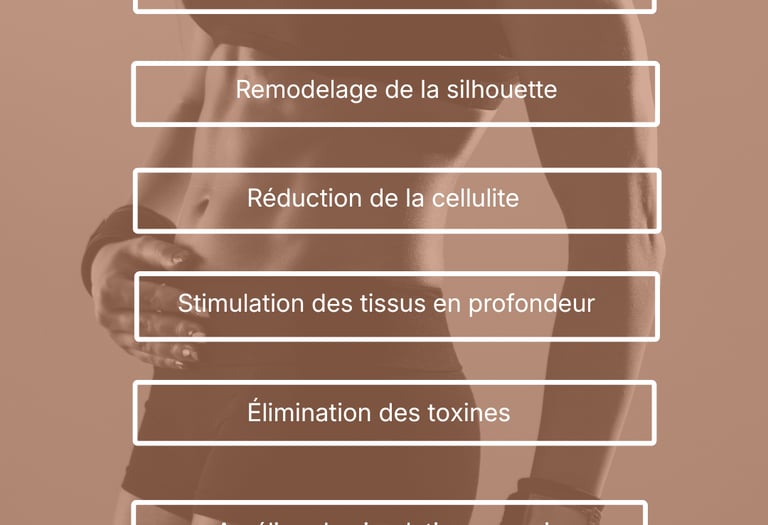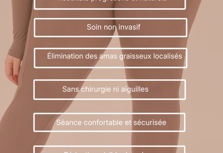 Des soins haute performance qui ciblent les amas graisseux et la cellulite pour affiner la silhouette, lisser la peau et retrouver des courbes plus harmonieuses.